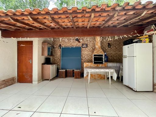Na área externa, a casa oferece uma charmosa área gourmet com lavabo, perfeita para momentos de lazer e confraternização com amigos e família.