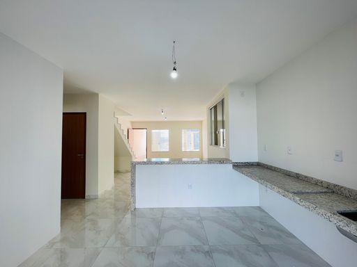 No térreo, você encontra uma sala ampla, perfeita para criar ambientes integrados e aconchegantes. A cozinha integrada amplia a sensação de espaço e facilita a convivência no dia a dia, além de contar com despensa para maior organização. O andar térreo também dispõe de um lavabo, oferecendo praticidade para visitas.