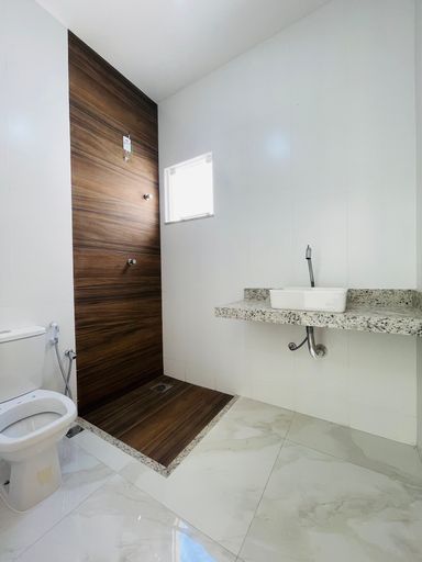 A área externa é um verdadeiro convite ao lazer: quintal amplo, área de churrasqueira para confraternizações e ducha, ideal para refrescar nos dias quentes.